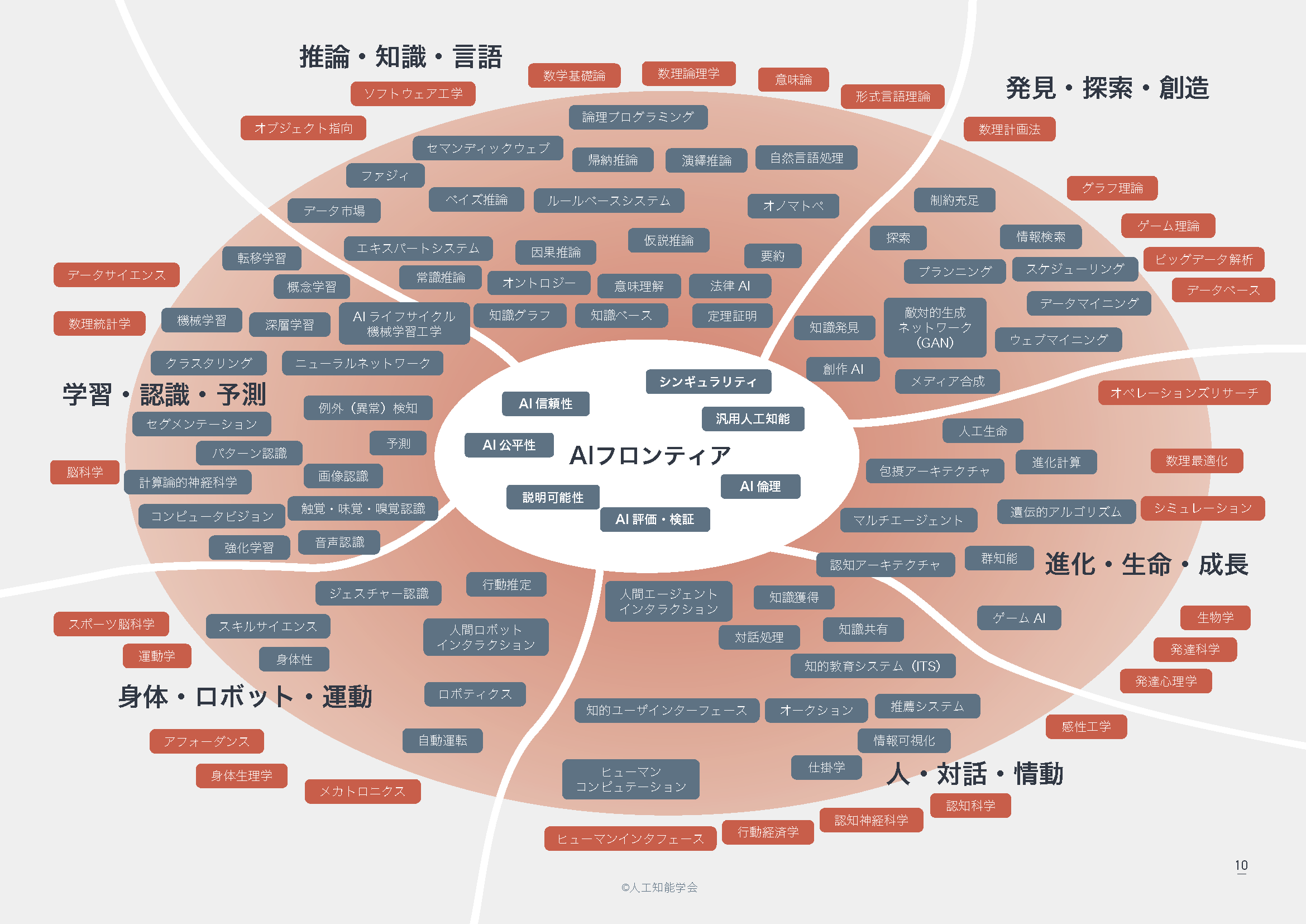 - 各マップには、AIに関連する研究分野を表すキーワードを配置している。