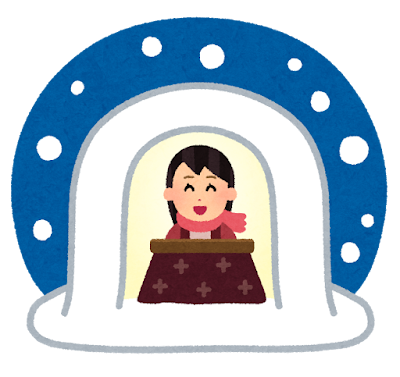 子どもたちは甘酒を一杯すすめてくれるのである。こんな時には、大人たちはこの子たちに一銭を与えることになっている。ここにも美しい日本がある。」 といいました。甘酒をふるまうかわかりませんが、外は寒く中は温かい「かまくら」 です。部屋は恐らく暖かいはずです。